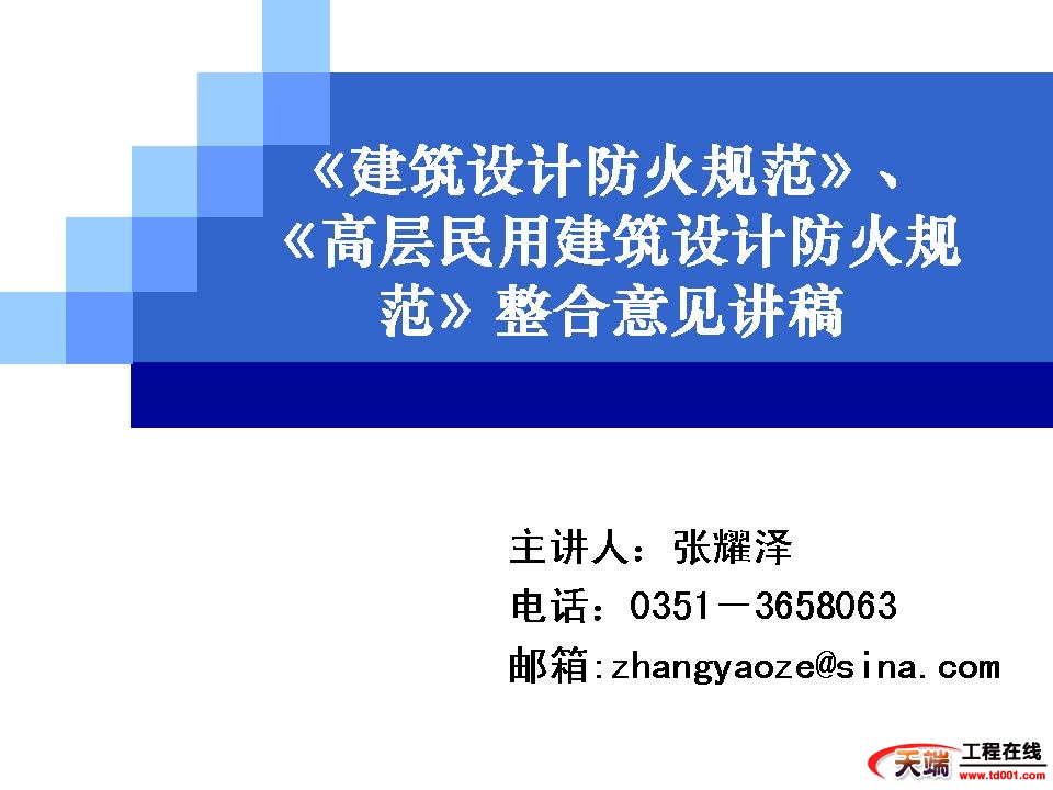 《建筑设计防火规范》、《高层民用建筑设计防火规范》整合意见讲稿