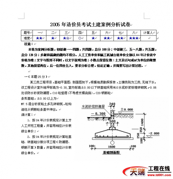 下载05造价土建考试修改答案