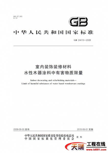 GB 24410-2009 室内装饰装修材料 水性木器涂料中有害物质限量