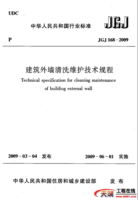 JGJ 168-2009 建筑外墙清洗维护技术规程 附条文说明