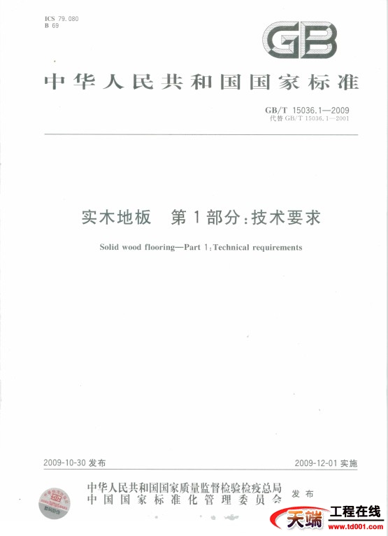 GBT 15036.1-2009 实木地板 第1部分:技术要求